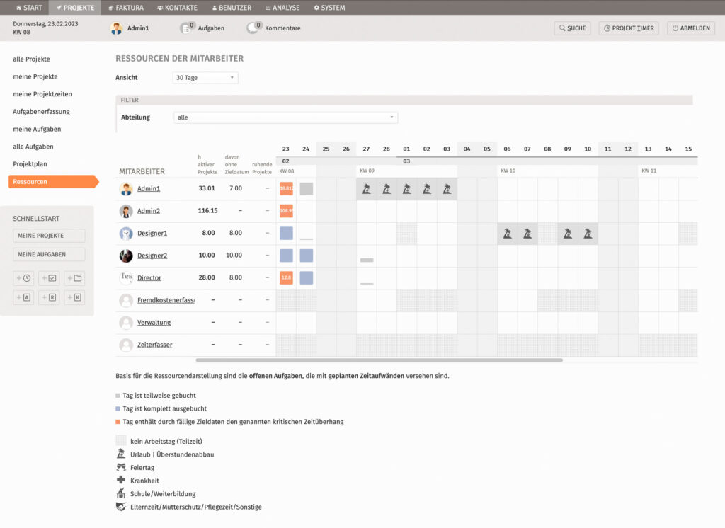 | Ressourcenplanung Personal • mit Urlaubsplanung | √ √ |