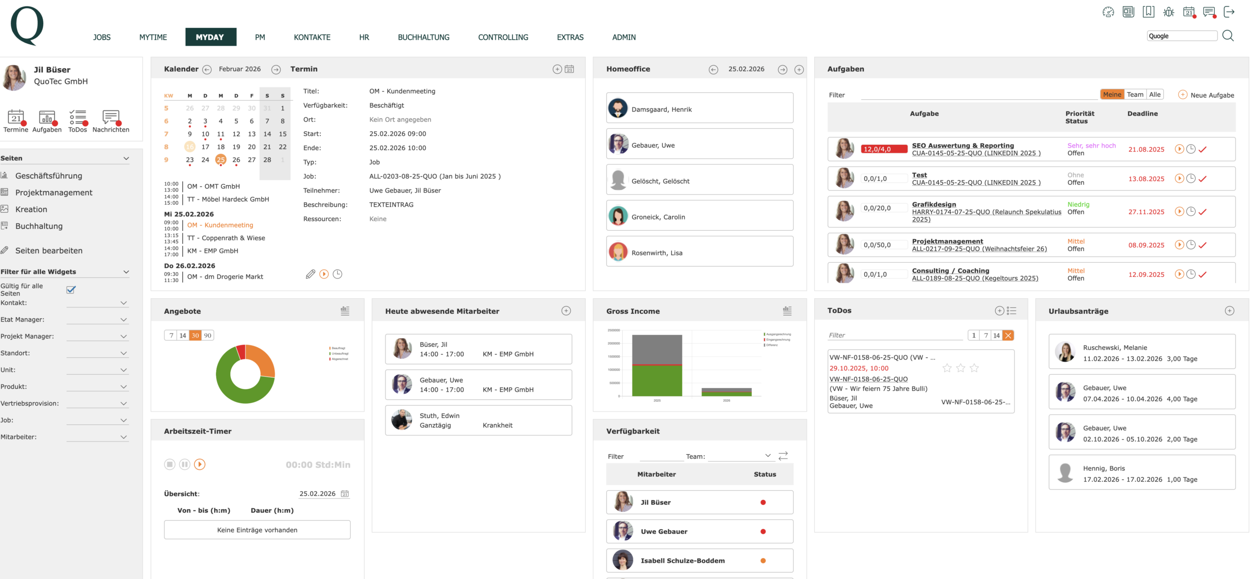 Das Dashboard und die Widgets in QuoJob verwandeln komplexe Unternehmensdaten in klare, handlungsrelevante Informationen.