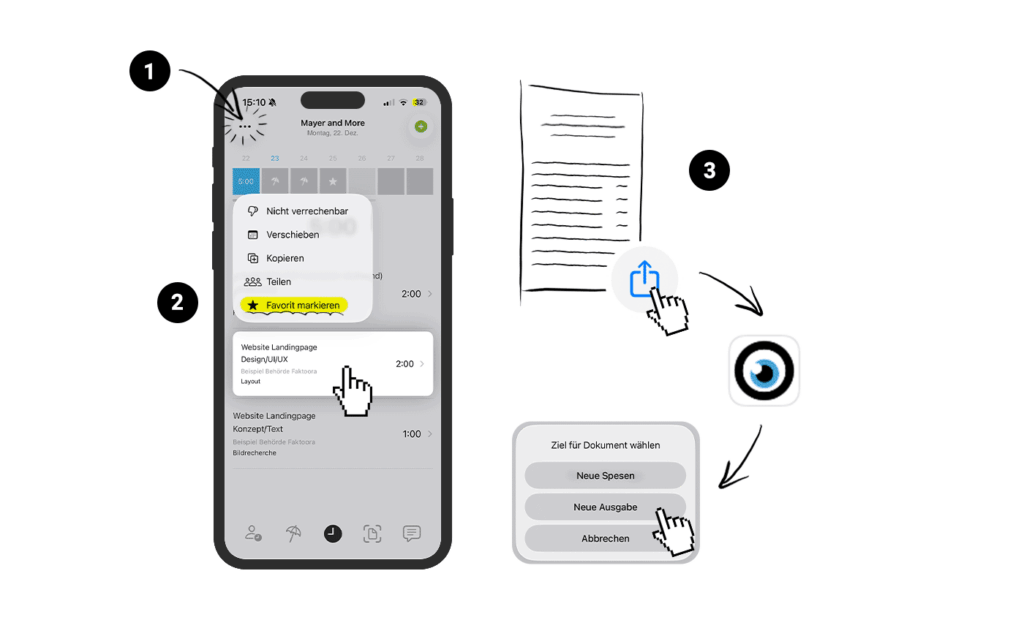 - Zeiteinträge als Favoriten: Einträge per Long-Press markieren und schneller wiederverwenden (2)