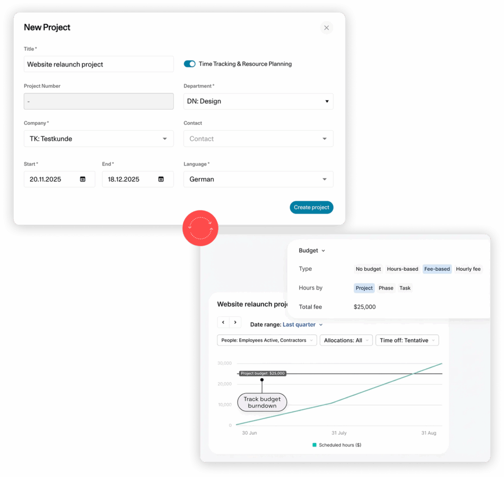 Sobald ein Projekt in OS/ angelegt wird, erscheinen Teams, Aufgaben und Zeitrahmen automatisch in Float. So werden Projektfortschritte, Verantwortlichkeiten und Verfügbarkeiten zentral gesteuert – ohne manuelle Doppelpflege oder Excel-Abgleiche.