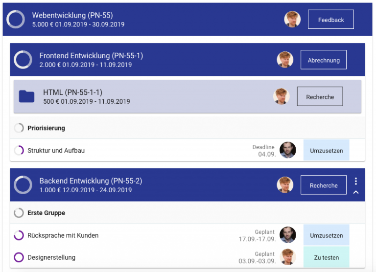 In der Agenturverwaltung lässt sich ein Projekt in Vorgänge zerlegen, welche jeweils ein Starttermin und ein Fälligkeitsdatum haben. Auf diese Weise lassen sich Abhängigkeiten zwischen Projektaufgaben berücksichtigen.
